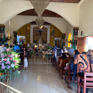 Una vez concluida la celebración religiosa, amenizada por “Chombe y sus teclados”, salieron del recinto religioso acompañados de amigos y familiares, quienes caminaron al paso por la calle principal del pueblo con el mariachi de Mascota Juvenil de Mascota, quienes durante el trayecto entonaron clásicas melodías regionales hasta llegar a la cancha de usos múltiples sede de la recepción.